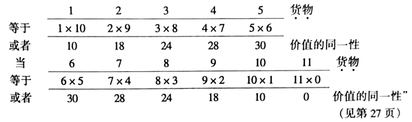 [29] 纵列中的空白处涉及到的需求,“其连续不断的逐个部分满足或是不完全可能,或是完全不可能……”(庞巴维克,第1卷,第40页)有关效用的职能作用不间断性的推测,其本身是可能的,因为“这只是对不间断的职能作用完全正确,而对间断性的职能作用也接近正确”。(尼·沙波什尼科夫,第1卷,第9页)在里昂·瓦尔拉斯那里我们找到了对同一问题的数学表现形式,但这是以客观具体化形式表现的(取决于供求的“歪曲价格”)。我们在“美国人”那里找到“随着需求的饱和该需求的迫切性减少”这种经过更加详细深入研究所作的客观具体表述。上面提到的卡弗(Carver)把效用定义为是满足需求的能力,价值是交换能力(“效用是满足某种需求或愿望的能力,而价值则是在和平自主的交换中获取其他想要的东西的惟一能力。”——第3页);按卡弗的观点,价格是用货币表现的价值的表现。价值以效用(“utility”)和相对稀缺性(“scarcity”)为转移而发生变体。卡弗这里明确说的不是评定的个人而是社会的需求(“wants of the community”,第13页)。在卡弗那里“饱和”定律称作“效用递减”定律,第15页。同时,卡弗提出social standpoint(“社会观点”,第17页)。“倾斜效用”是作为社会范畴(第18页)。食利者政治经济学这里明显转变为托拉斯组织者的政治经济学。
