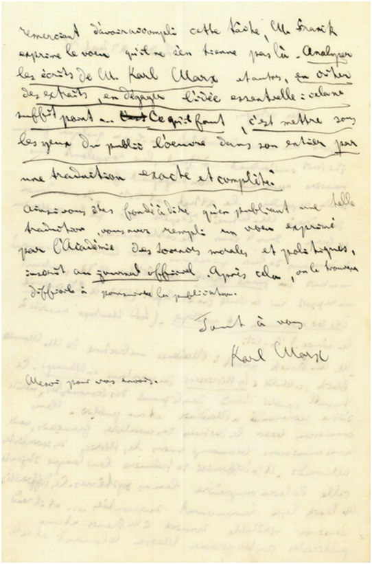 “弗兰克院士先生向科学院介绍了莫里斯·布洛克[3]先生的一个小册子,题目为《德国的社会主义理论家》。这篇著作最早发表在《经济学家杂志》上,值得推荐给科学院和公众。我们很熟悉法国社会主义者的理论,却很不了解德国社会主义者的理论。除了翻译他们的语言很困难外,理解他们的体系也很困难。幸而布洛克先生克服了这重重困难……并且为法国和当代政论家提供了真正的帮助。然而,弗兰克先生在赞扬并感谢布洛克先生完成这一任务的同时,表示希望布洛克先生不会止步于此。靠引用摘要和引出重要思想来分析卡尔·马克思先生和其他人的著述,这是不够的……应当通过准确而完整的翻译将全部著作呈现给公众。