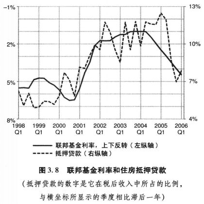 图3.8 联邦基金利率和住房抵押贷款