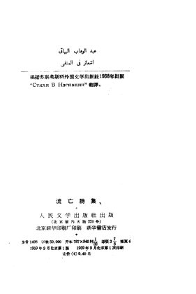 《流亡诗集》 译者:魏和泳 人民文学出版社,1959年 根据苏联莫斯科外国文学出版社1958年出版 【CHM电子书下载】