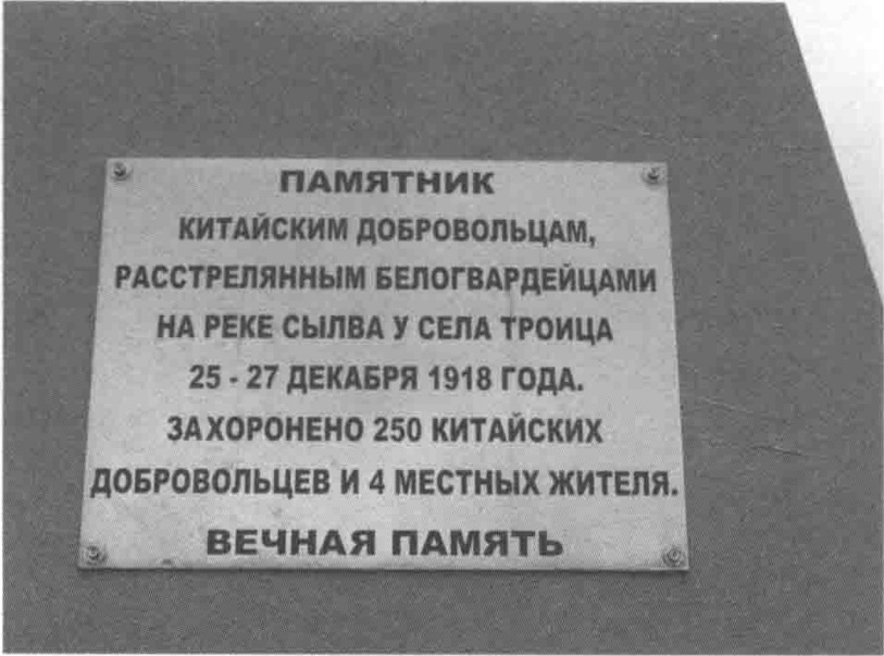 彼尔姆边疆区特洛伊察镇中国志愿者纪念碑碑文