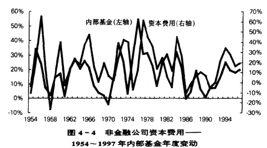 图4-4 非金融公司资本费用——1954~1997年内部资金年度变动