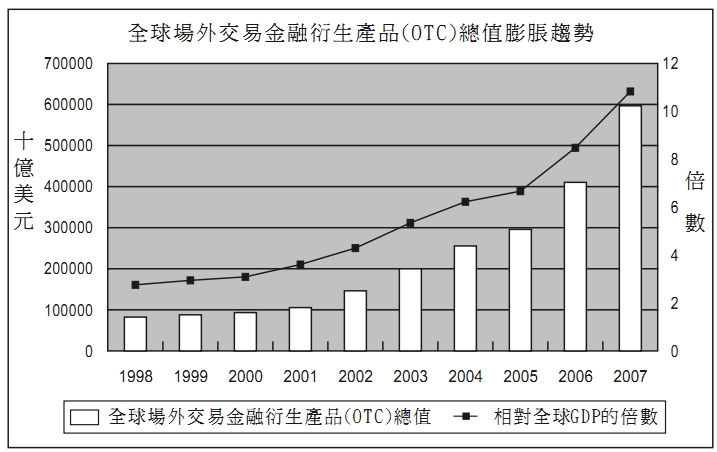 金融机构为了寻找高利润回报,利用房地产按揭发行高杠杆比率的金融衍生产品。次按风暴的源头「信贷违约掉期」(Credit Default Swap, CDS)就是其中之一。直至2007年,类似的金融衍生产品总值已高达600万亿美元,即约为全球每年本地生产总值的10倍,当中「信贷违约掉期」约值60万亿美元。
