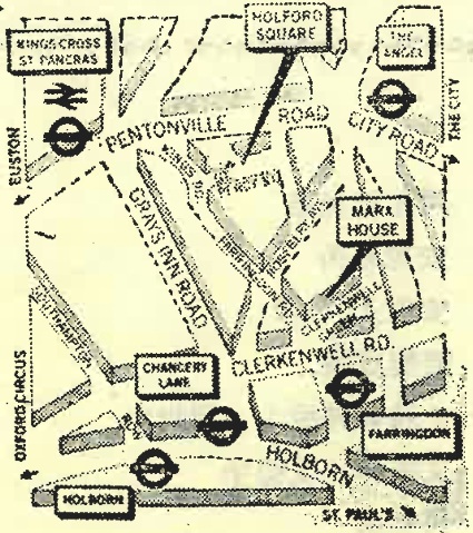 为了出席俄国社会民主工党第二次代表大会,列宁在1903年又回到伦敦,跟他的妻子克鲁普斯卡娅一起住在荷尔福广场30号(见103页地图)。这个地方在芬斯伯里,离国王十字路不远,从车站步行10分钟可达。1943年,在这地方对面建了一个纪念碑,由俄国大使揭幕。在第二次世界大战期间,这所房子被炸毁了;1945年以后,整个地区重新作了规划,广场也随之消失了。